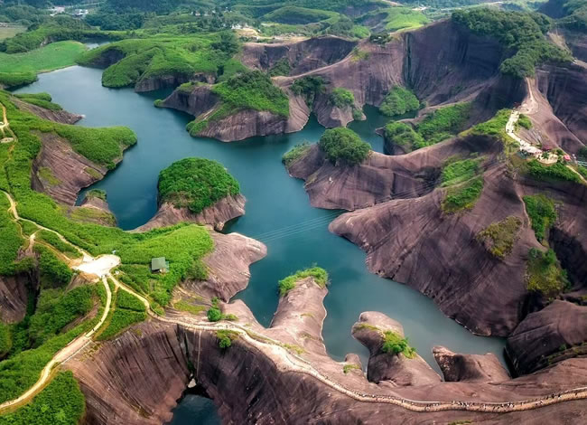 抵達后,前往郴州抖音最火網(wǎng)紅打卡地【高椅嶺】(游覽時間約3.5小時)。車覽【馬皇丘大峽谷】,峽谷原為一條小路穿行而過,現(xiàn)為一條漂亮的馬路,卻造就了另一種景觀,其中絕壁上的酷似女性私處【陰元石】更是丹霞景觀一絕。而后徒步高椅嶺,欣賞絕美之丹霞碧水,【巨蜥臥水】。先是歷經(jīng)【瓜石頸】之天梯險境,再是近距離感受【羊牯石】景區(qū)之絕美。從高處往下鳥瞰瓜石頸,一條清澈美麗的“天河”蜿蜒穿行在丹霞地貌之間,或?qū)捇蛘禐榇笥^,從羊牯石景區(qū)原路返回至瓜石頸,沿另一條石級自上而下欣賞水中“巨蜥”形神兼?zhèn)渲^美,驚于大自然的造化與鬼斧神工。這一片丹霞碧水,因為丹霞地貌周邊有漂亮的水洼點綴,美得一塌糊涂。