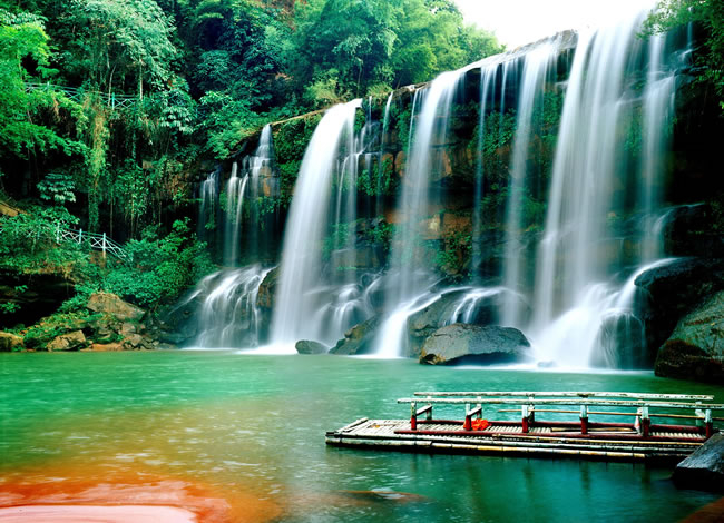 早餐后前往當(dāng)?shù)厣鐣唐妨闶燮髽I(yè)自由活動并領(lǐng)精美紀(jì)念品,名特產(chǎn)品(較為著名云上赤水泰和乳膠、逸可瑞斯乳膠等,主要銷售乳膠制品),自由活動后前往【赤水大瀑布】欣賞美譽中國的簾狀瀑布典型代表中洞瀑布。觀氣勢恢弘的赤水大瀑布(寬81米,高76米),是亞洲最大的瀑布,也是“世界丹霞第一瀑”,瀑水從懸崖絕壁傾瀉而下,猶如萬馬奔騰,聲如雷鳴,水霧彌漫,陽光下時見彩虹繽紛,在特定的觀景石上,奇妙的佛光環(huán)隨人移動,一人一環(huán),美不勝收。自由活動后乘車前往【白馬溪景區(qū)】(此景點為旅行社贈送景點,若時間緊湊無法前往請各位旅客諒解,贈送景點不予置換或退費),(白馬溪景區(qū)內(nèi)有玻璃橋、旱滑道等娛樂項目,客人可根據(jù)自身情況自愿選擇自己喜歡的項目參加,報價不含娛樂項目)赤水白馬溪景區(qū)是赤水唯一家主題景區(qū),景區(qū)集有赤水旅游的5大旅游元素;瀑布景觀、丹霞景觀、竹林景觀、石斛觀光、以及活化石桫欏樹。景區(qū)原生植被繁茂,景色怡人,環(huán)境絕佳。是旅游觀光的絕佳勝地,晚餐可自費品嘗(苗家風(fēng)情晚會120元/人),同時觀賞苗家印象激情互動篝火晚會,或自由活動。酒店休息。