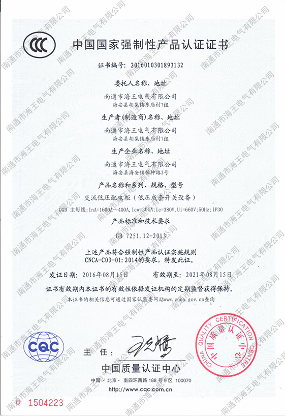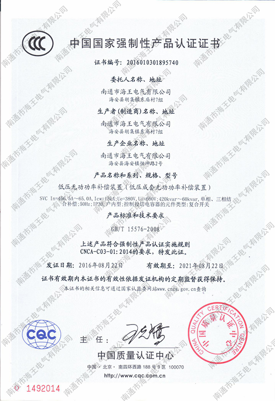 - 中國(guó)國(guó)家強(qiáng)制性產(chǎn)品認(rèn)證證書